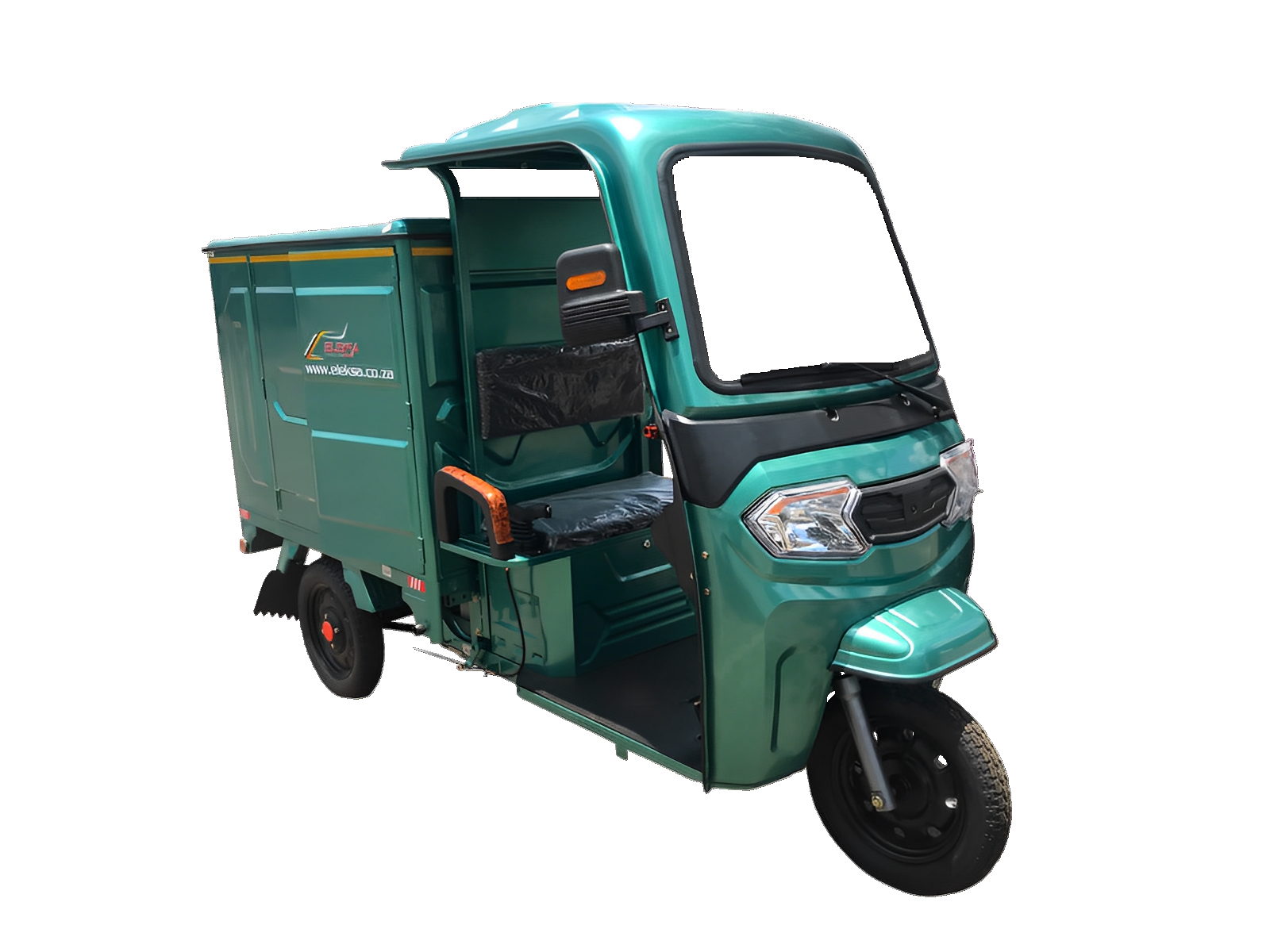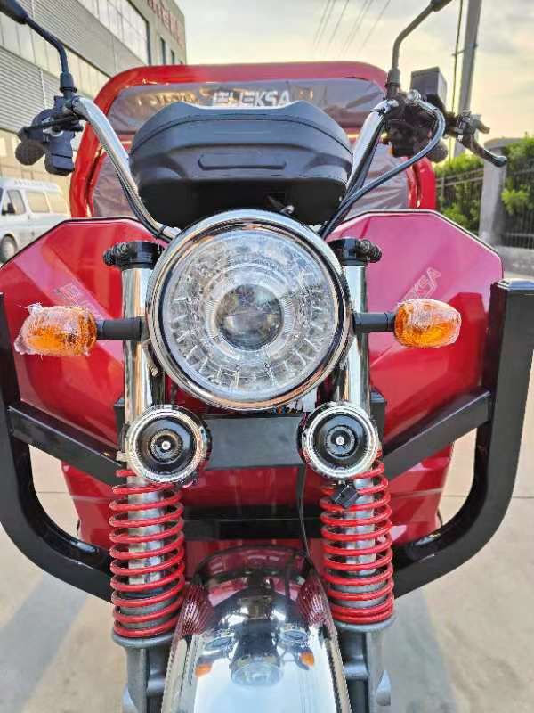 This versatile electric vehicle boasts a waterproof roof design with an integrated metal canopy for durability. Its features include a convenient button control switch for wipers, a boneless wiper arm, and a solid frame with an 80402(mm) thickened main elbow for reliability. The advanced 60V1500W permanent magnet synchronous electronic control system enhances speed by 40%. The lithium batteries, compact and lightweight, offer three times the service life of lead-acid batteries. Maintenance is simplified with interchangeable three wheels, while Φ43 outer spring hydraulic absorbers ensure a smooth ride. Additional features include a large square rearview mirror, a central mirror with a reversing image, MP3 and radio, a carriage pole for easy cargo box lifting during maintenance, mobile phone charging support, a storage box, a storage bag, and an integrated non-slip pedal for convenience and utility.